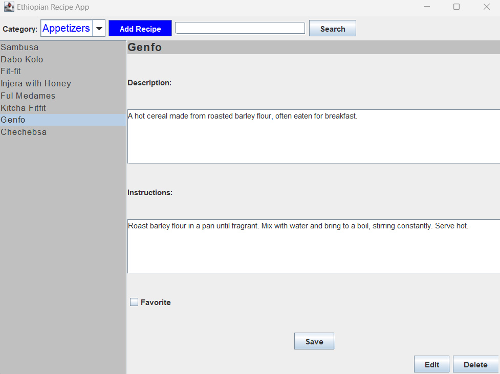 Ethiopian Recipe App (Java, Swing, User Authentication)